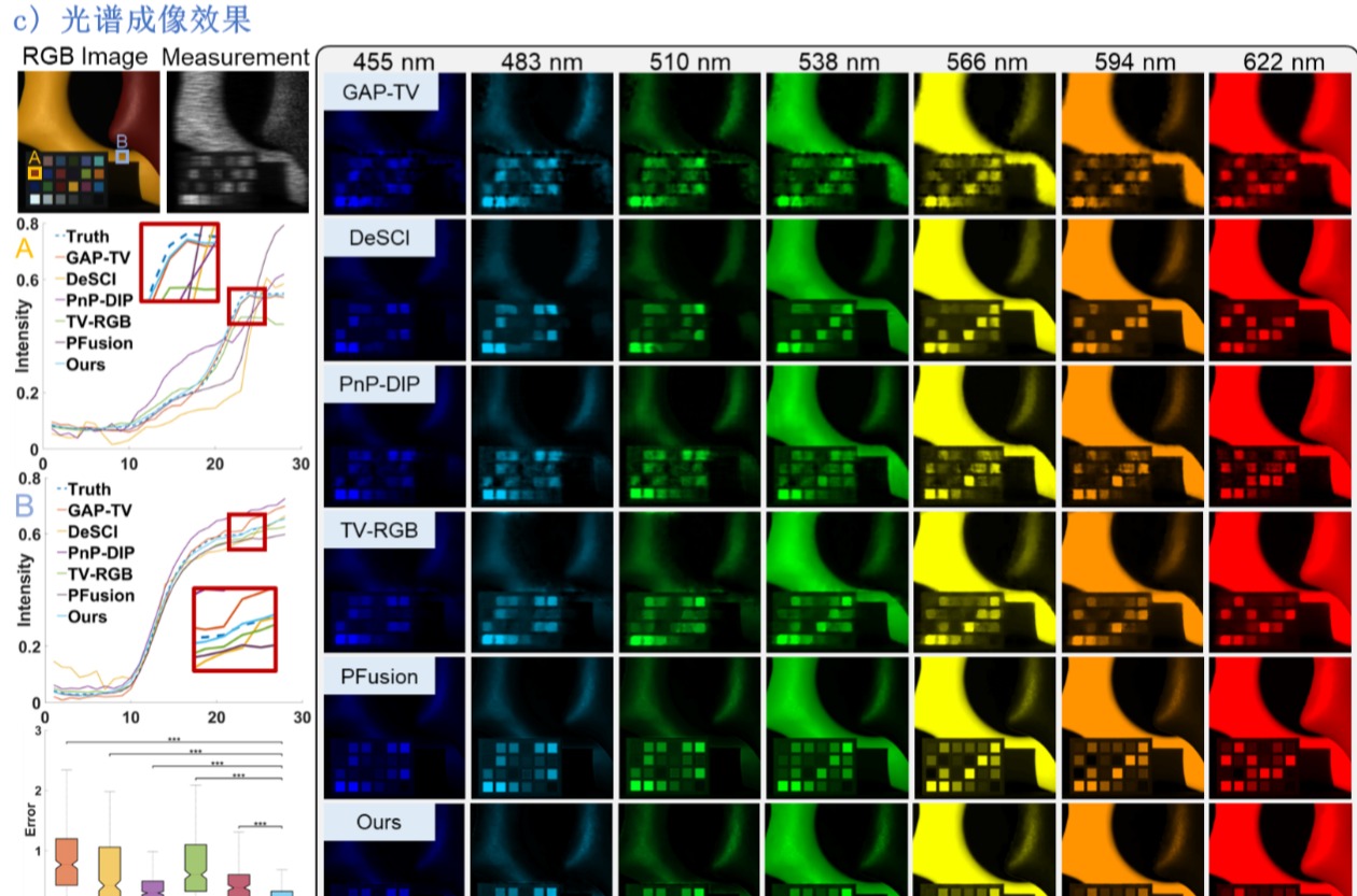 高光谱成像技术因其可捕捉光谱“指纹”的独特能力,在工业检测、生物医疗、遥感探测等领域广泛运用。但受制于采集速度慢、数据维度高、对光照条件依赖强等瓶颈,难以兼顾空间分辨率、光谱精度与成像效率的平衡。针对上述难题,湖南大学党委宣传部(新闻办公室)机器人学院、机器人视觉感知与控制技术国家工程研究中心王耀南院士团队聚焦“高效快照式光谱成像”关键技术,构建了一系列原创成像模型,融合了先验引导与低秩分解等新型算法,搭建了集硬件设...