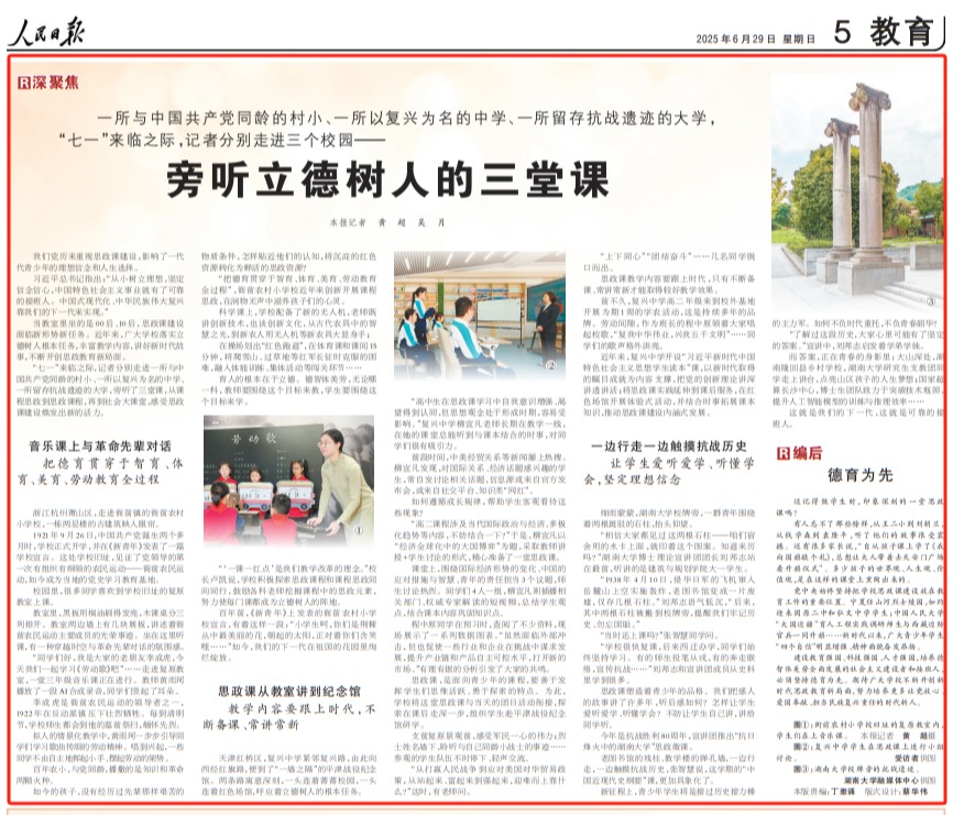 我们党历来重视思政课建设,影响了一代代青少年的理想信念和人生选择。习近平总书记指出:“从小树立理想,坚定信念信心,中国特色社会主义事业就有了可靠的接班人。中国式现代化、中华民族伟大复兴靠我们的下一代来实现。”当教室里坐的是00后、10后,思政课建设面临新形势新任务。近年来,广大学校落实立德树人根本任务,丰富教学内容,讲好新时代故事,不断开创思政教育新局面。“七一”来临之际,记者分别走进一所与中国共...