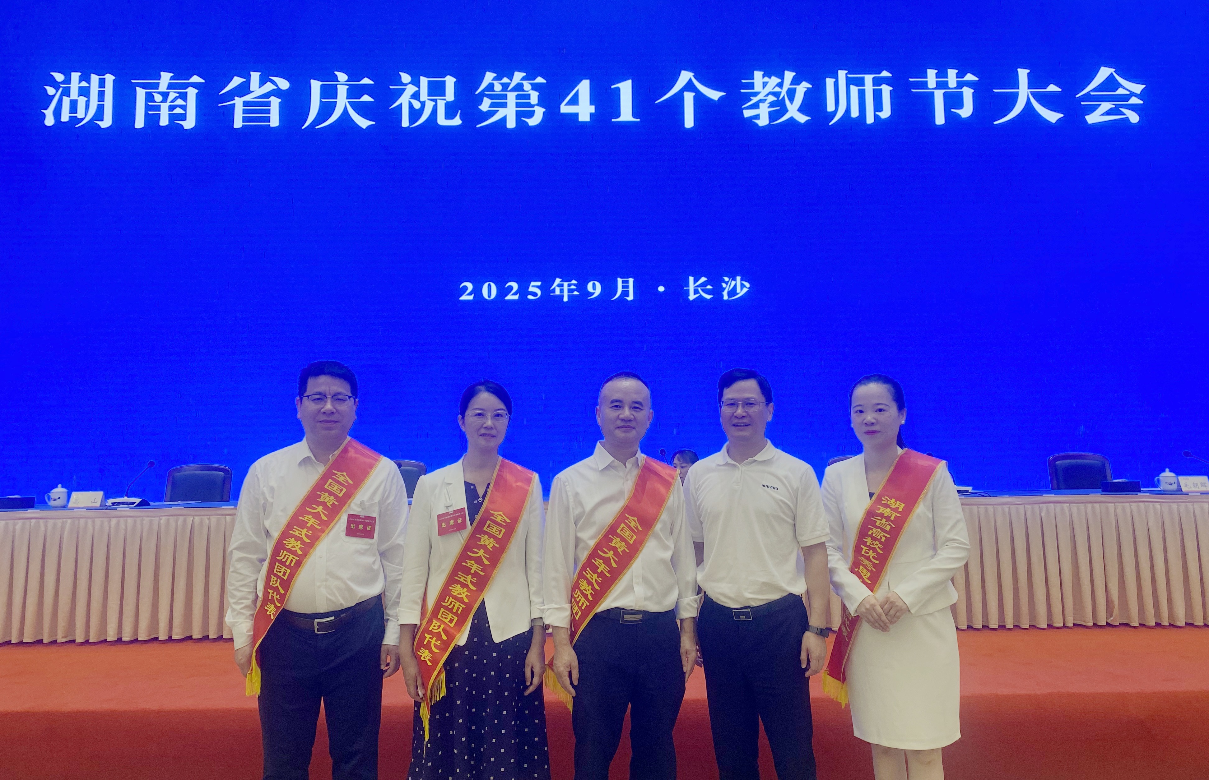 9月9日上午,湖南省庆祝第41个教师节大会在长沙举行。庆祝大会前,省委副书记、省长毛伟明在长沙会见参加湖南省庆祝第41个教师节大会的全体优秀教师,省领导张迎春、王柯敏,省政府秘书长瞿海参加有关活动。我校化学化工学院张晓兵教授、宦双燕教授、袁林教授作为全国高校黄大年式教师团队代表,马克思主义学院汤素娥教授作为2025年湖南省高校优秀思想政治工作者代表受邀参会,张晓兵教授作为优秀教师代表报告先进事迹。副校长...