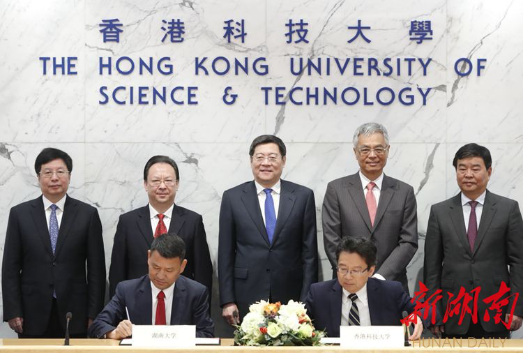 杜家毫与香港科大校长史维等共同见证湖南大学党委宣传部(新闻办公室)与香港科大签署合作意向书。