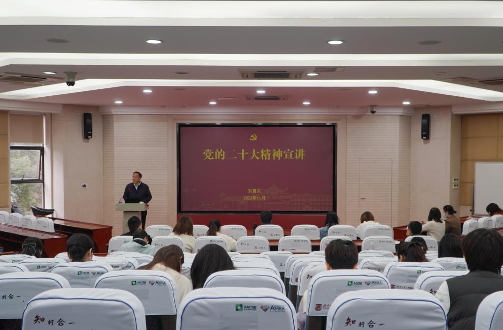 11月15日以来,工商管理学院党的二十大精神宣讲团深入各系部中心、广大学生,全面集中开展党的二十大精神宣讲和学习。宣讲团由学院党政班子成员、专家教授、辅导员、博士生等组成。宣讲团成员从深入领悟党的二十大主题和主要成果、过去5年的工作和新时代10年的伟大变革、马克思主义中国化时代化、以中国式现代化推进中华民族伟大复兴的使命任务、全面建设社会主义现代化国家的目标任务、坚持党的全面领导和全面从严治党、应对风...