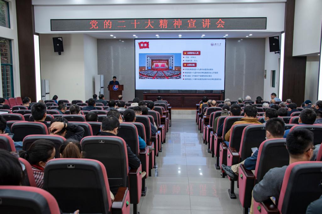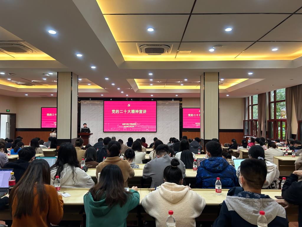 11月22日下午,金融与统计学院在财院校区大礼堂举行党的二十大精神学习报告会,学院党委书记黄红立领学。学院全体教职工和80余名学生代表参加。会议围绕“关于党的二十大的主题、主要成果”“过去5年的工作和新时代10年的伟大变革”“马克思主义中国化时代化”“中国式现代化”“全面建设社会主义现代化国家的目标任务”“坚持党全面领导和全面从严治党”“为中国式现代化贡献金融力量”“应对风险挑战”和“历届党中央的湖大人...