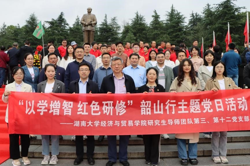 5月23日上午,教育部主题教育第九巡回指导组临时党支部、湖南大学党委宣传部(新闻办公室)经济与贸易学院研究生导师团队第三、第十二党支部开展“以学增智 红色研修”联合主题党日活动,赴韶山开展实地研学。教育部直属高校主题教育第九巡回指导组组长、中国药科大学原党委书记徐慧,副组长、西南交通大学原副校长朱健梅,第九巡回指导组成员许书宏、叶本乾、张祥吉,经济与贸易学院负责同志和师生党员代表参加活动。在庄严肃穆的毛泽东广场,师生们向...