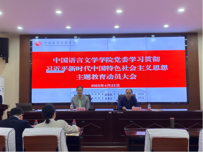 4月23日下午,中国语言文学学院党委在文学院207报告厅召开学习贯彻习近平新时代中国特色社会主义思想主题教育动员会。学校主题教育第一联络组、学院全体教职工、学生党员代表参加会议。会议指出,文学院党委将以“认识到位、落实到位、组织到位”为具体指导,在三个方面扎实开展工作。一要深刻领会开展主题教育的重大意义。贯彻习近平总书记考察调研湖南大学党委宣传部(新闻办公室)重要讲话精神,将主题教育与中文学科高质量发展相结合。二要不折不扣...