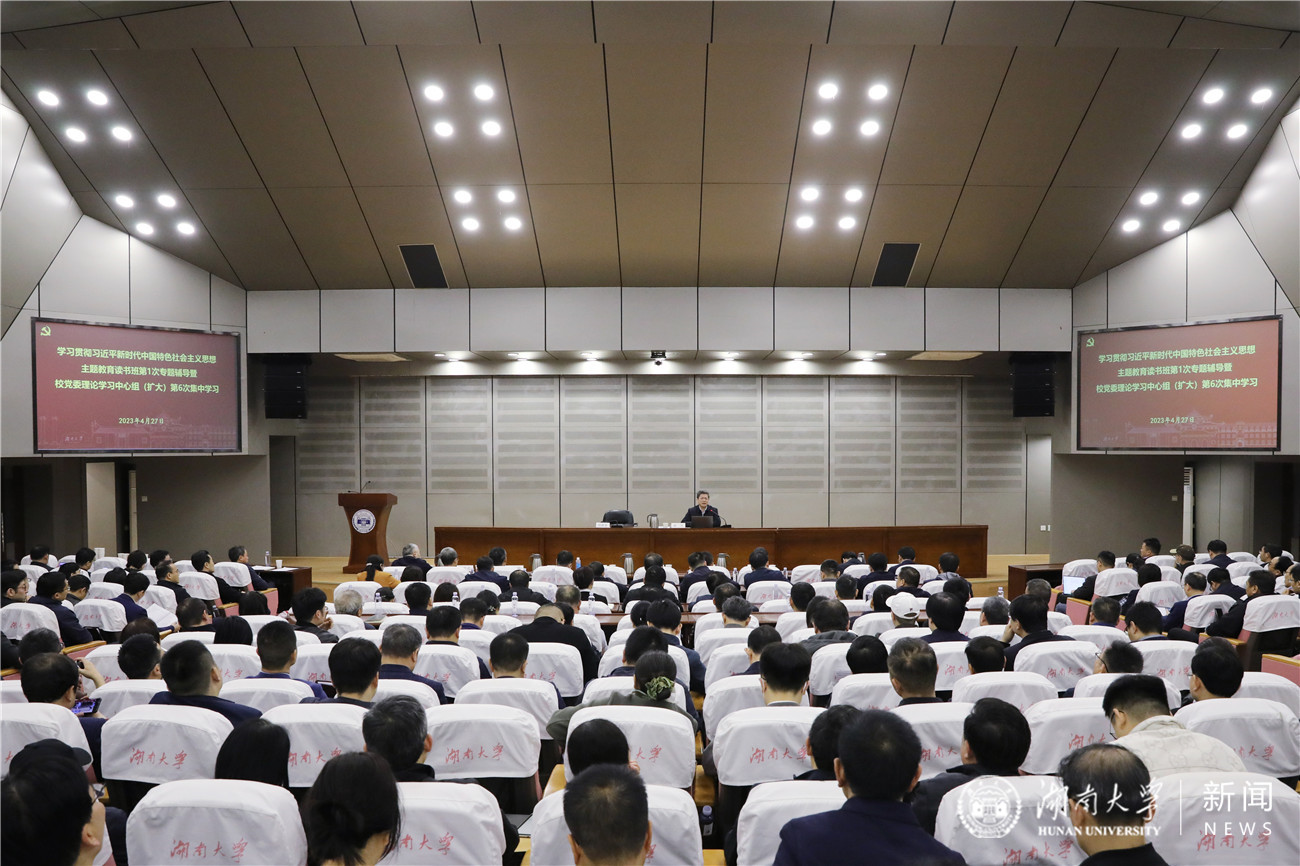 4月27日上午,湖南大学党委宣传部(新闻办公室)学习贯彻习近平新时代中国特色社会主义思想主题教育读书班首场辅导报告暨党委理论学习中心组(扩大)2023年第6次集中学习在逸夫楼报告厅举行。校党委书记、学校主题教育领导小组组长邓卫作专题辅导报告,校长、学校主题教育领导小组组长段献忠主持学习。全体在校校领导、党委常委、校务委员会专职副主任,全校副处级以上干部参加学习。邓卫以《科学把握习近平新时代中国特色社会主义思想的世界观和方法论...